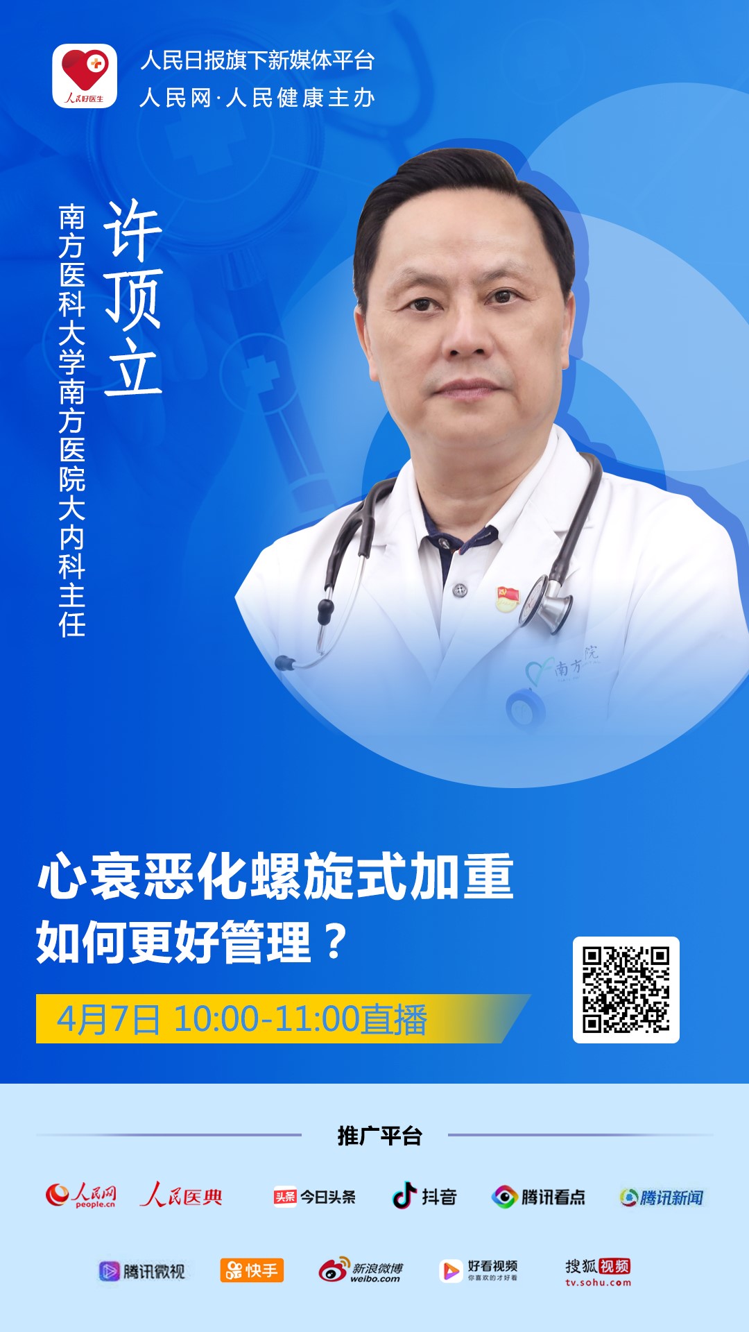 2021年4月7日(周三)10:00-11:00,南方醫科大學南方醫院大內科主任許頂立做客人民日報社旗下新媒體“人民好醫生”客戶端,為大眾答疑解惑。