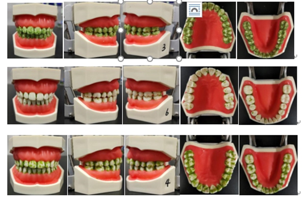 試驗結果顯示,25款樣品通過對牙模污物清潔效果的比較,16款樣品的清潔效果相對較好;有4款樣品欠佳,清潔效果較差。
