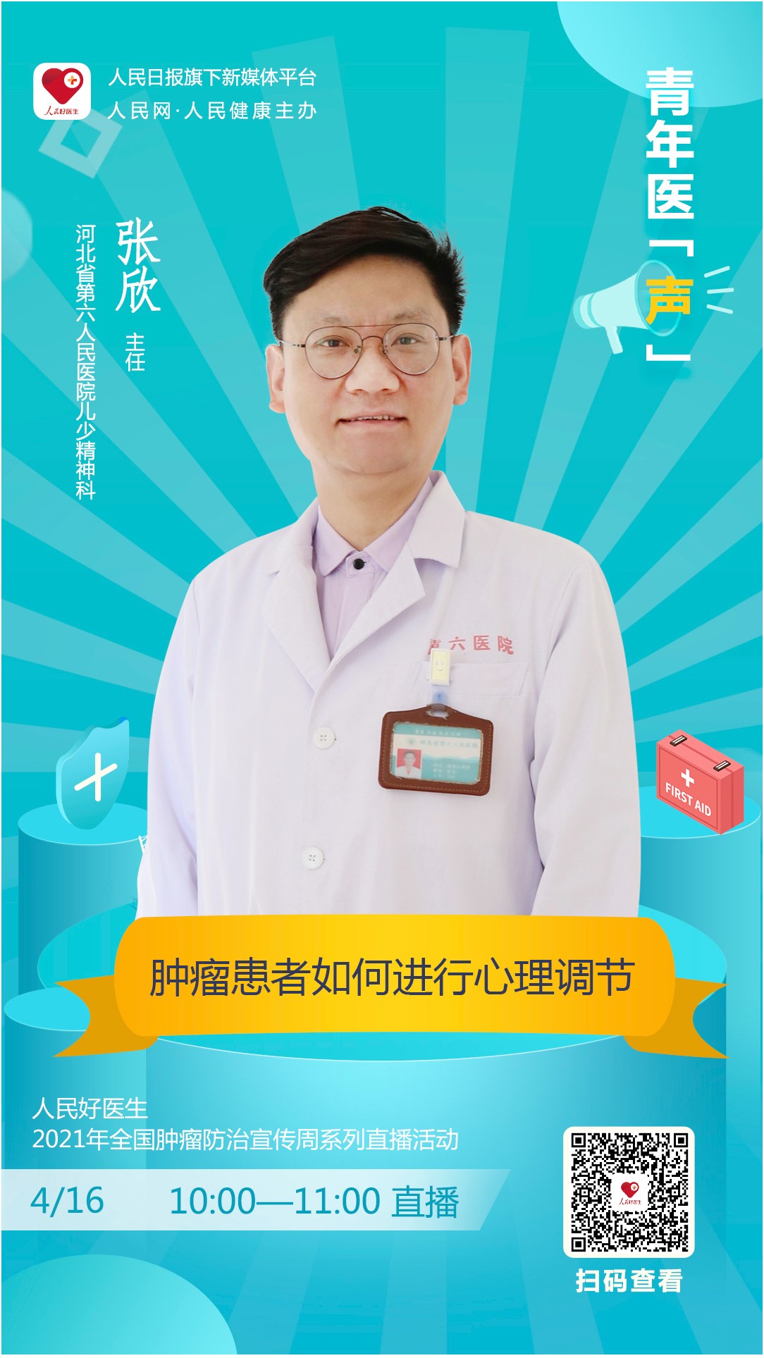 4月16日10:00-11:00人民日報社旗下新媒體“人民好醫生”客戶端將邀請河北省精神衛生中心心理救援隊副隊長、河北省第六人民醫院兒少精神科主任 張欣做客“青年醫‘聲’”欄目,為大家講解腫瘤患者該如何進行心理調節,患者家屬該如何配合醫生進行心理治療,千萬不要錯過。