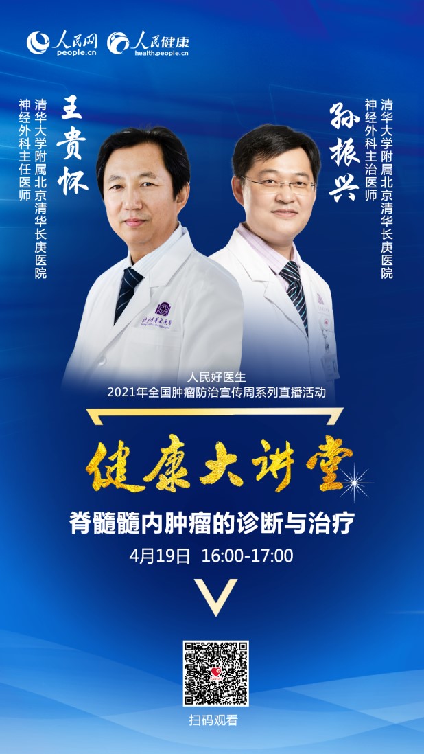 4月19日16:00-17:00,人民網·人民健康《健康大講堂》欄目邀請到清華大學附屬北京清華長庚醫院神經外科主任醫師王貴懷、清華大學附屬北京清華長庚醫院神經外科主治醫師孫振興進行視頻直播,歡迎屆時收看。