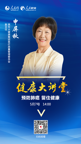 為向大眾普及癌癥相關科普知識,進一步提升大眾對癌癥“早發現、早診斷、早治療”的認知,切實做好科學防癌,5月07日14:00,美年大健康集團醫療質量管理委員會副主任申屏秋、教授做客人民健康大講堂。給公眾科普肺癌防治相關知識。