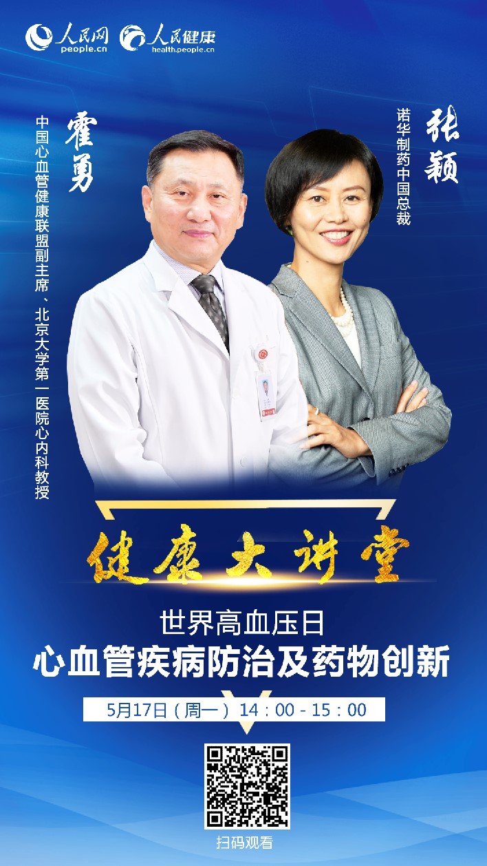 5月17日14:00至15:00我們有幸邀請(qǐng)到中國心血管健康聯(lián)盟副主席、北京大學(xué)第一醫(yī)院心內(nèi)科教授霍勇;諾華制藥(中國)總裁張穎做客人民健康大講堂,分享心血管疾病防治及藥物創(chuàng)新話題。