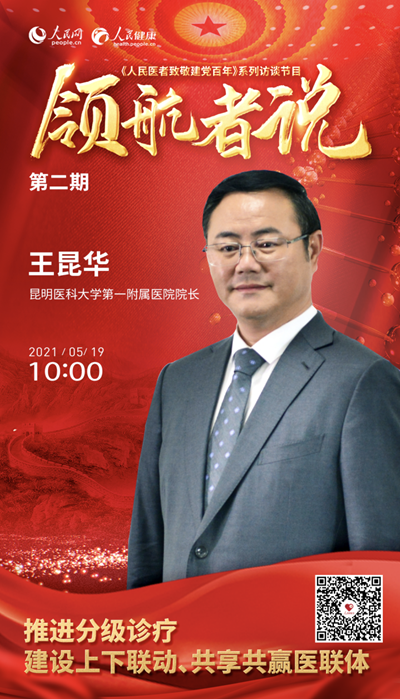 5月19日10:00,昆明醫科大學第一附屬醫院院長王昆華做客演播室,以“推進分級診療 建設上下聯動、共享共贏醫聯體”為主題進行訪談。