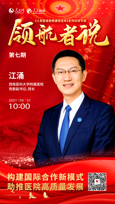 5月31日 10:00,西南醫科大學附屬醫院黨委副書記、院長江涌做客演播室,以“構建國際合作新模式 助推醫院高質量發展”為主題進行訪談。