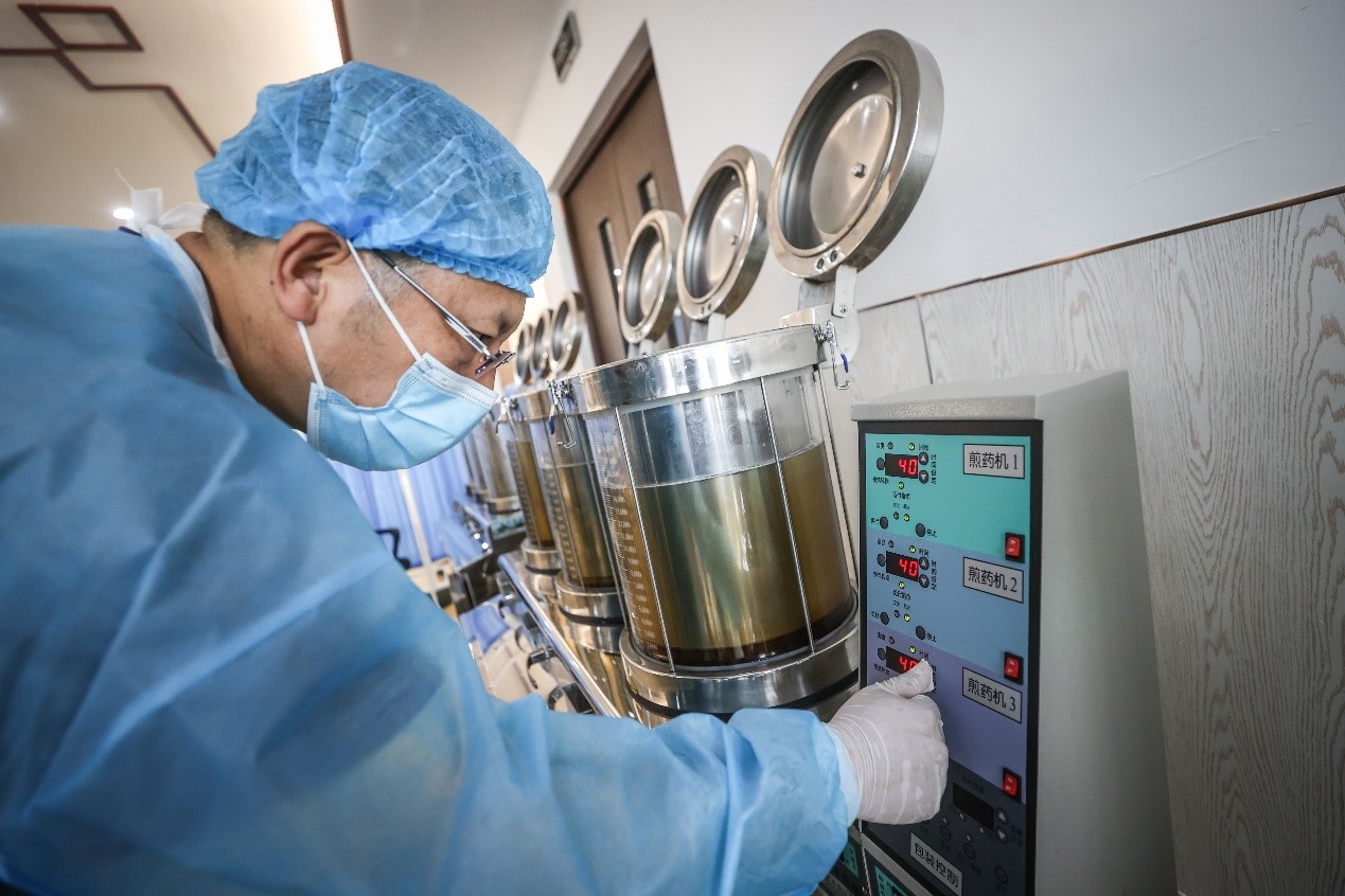 2021年5月23日,醫生在遼寧省營口市中西醫結合醫院內對自動煎藥機進行設置。新華社記者 潘昱龍攝