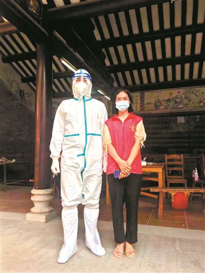 陳展標是土生土長的江高人,“這次能回到養育我的家鄉,為父老鄉親們服務,我特別高興,她在身邊支持,讓我充滿力量,也更加勇敢。”“去年他去支援武漢抗疫,我沒辦法陪他。這次我們能共同攜手守護家園,這真是緣分。”劉雪英說,“我在現場維持好秩序,優化排隊分流,協助他做好輔助工作,就能幫他減輕負擔,讓他更輕松一些。”劉雪英說。