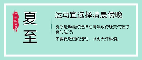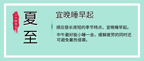 夏至節氣想要預防疾病發生,人們應首先保持輕松愉快的心情,忌惱怒憂郁,使氣機宣暢、通泄自如。另外,夏天晝長夜短,且夜間溫度也較高,心靜自然涼最是保證”陰陽平衡”,能降低心血管疾病發作風險。(綜合北京衛健委 北京中醫醫院懷柔醫院 北京晚報)(制圖:孫紅麗)