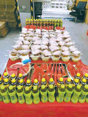 除了發放高溫津貼之外,一些消暑的食物藥品同時也沒缺席。“從我進公司開始,每到夏天,西瓜、飲料幾乎沒斷過。”快遞員王晨說。順豐北京相關負責人也表示,除了向員工發放高溫津貼之外,公司每年還組織夏季“送清涼”,給員工購買西瓜、香蕉等水果飲料,發放藿香正氣水、風油精等高溫防暑藥品。