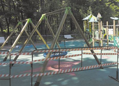 圖為莫斯科一兒童游樂場因疫情暫停開放。本報記者 董映璧攝