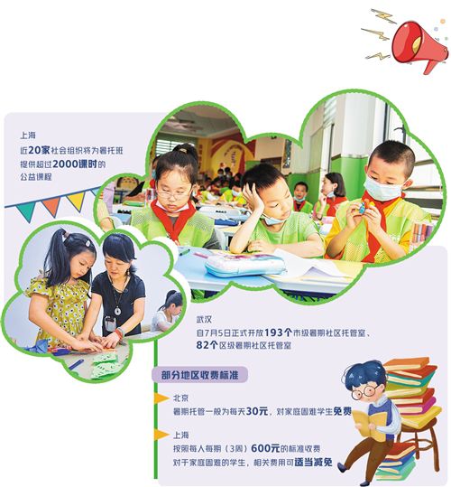 為此,多地政府推出了“暑托班”服務。7月2日,北京市教委發布公告,將在暑期推出面向小學一年級至五年級學生的托管服務,由各區教委組織,學校承辦。此前,上海、武漢等多地已推出暑假托管服務。