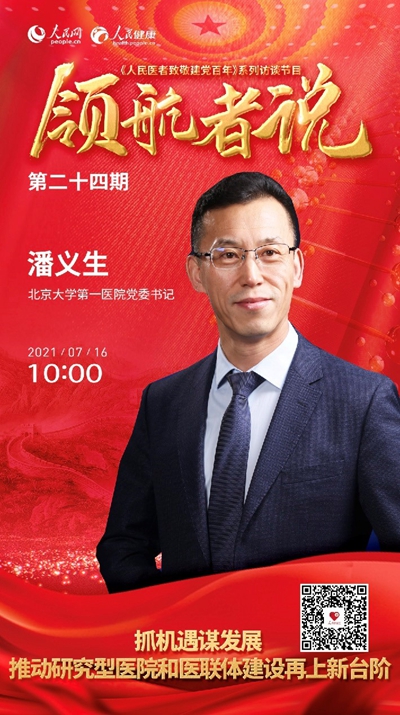 7月16日10:00,北京大學第一醫院黨委書記潘義生將做客演播室,以“抓機遇謀發展 推動研究型醫院和醫聯體建設再上新臺階”為題進行訪談。