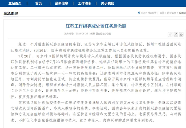 完成疫情處置任務!聯(lián)防聯(lián)控機制江蘇工作組人員全部撤離江蘇