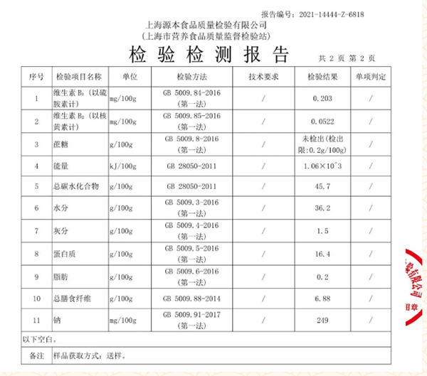 營養標簽上標示的能量主要由計算法獲得。即蛋白質、脂肪、碳水化合物等產能營養素的含量乘以各自相應的能量系數(蛋白質17kJ/g、脂肪37kJ/g、碳水化合物17kJ/g)并進行加和,能量值以千焦(kJ)為單位標示。產品能量的標示值是764kJ/100g,檢測報告中根據實測數據直接計算出來的能量實測值是標示值的139%。參照產品標簽標識方式,計算時考慮膳食纖維提供的能量,則實測能量值為1001kJ/100g,是標識值的131%。蛋白質則實測值為16.4g/100g,而標示值為僅為6.4g/100g,實測值是標示值的256%。鈉的實測值是249mg/100g,而標示值是107mg/100g,實測值是標示值的233%。