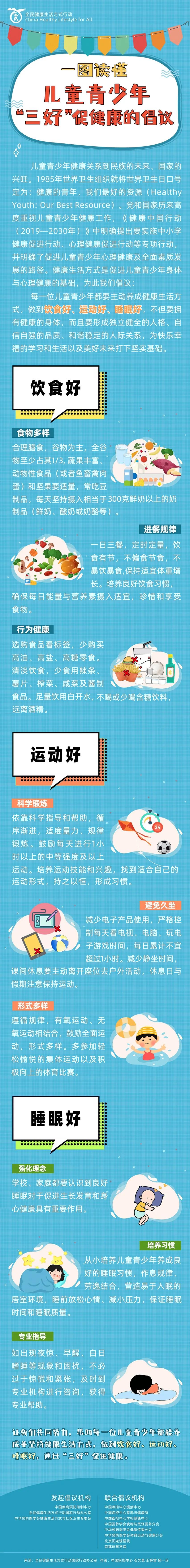 “倡議”最后呼吁,讓大家共同努力,幫助每一位兒童青少年都能養成并堅持健康生活方式,做到飲食好、運動好、睡眠好,通過“三好”促進健康。