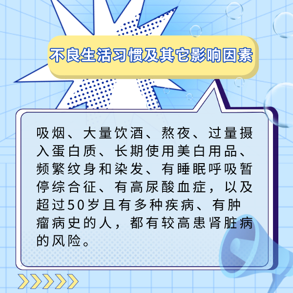 人民網(wǎng)北京10月20日電 (記者喬業(yè)瓊)蛋白質(zhì)進(jìn)入體內(nèi)后會分解為肌酐、尿酸、尿素等代謝廢物,這些物質(zhì)大都經(jīng)腎臟排出。如果大量攝入蛋白質(zhì),代謝廢物在體內(nèi)就會明顯增多,進(jìn)而加重腎臟負(fù)擔(dān),有可能引發(fā)腎臟疾病。其實不僅是過量攝入蛋白質(zhì),長期使用美白用品、頻繁紋身和染發(fā)、吸煙、大量飲酒、熬夜等人群,都有較高患腎臟病的風(fēng)險,更要關(guān)注自己的腎臟。