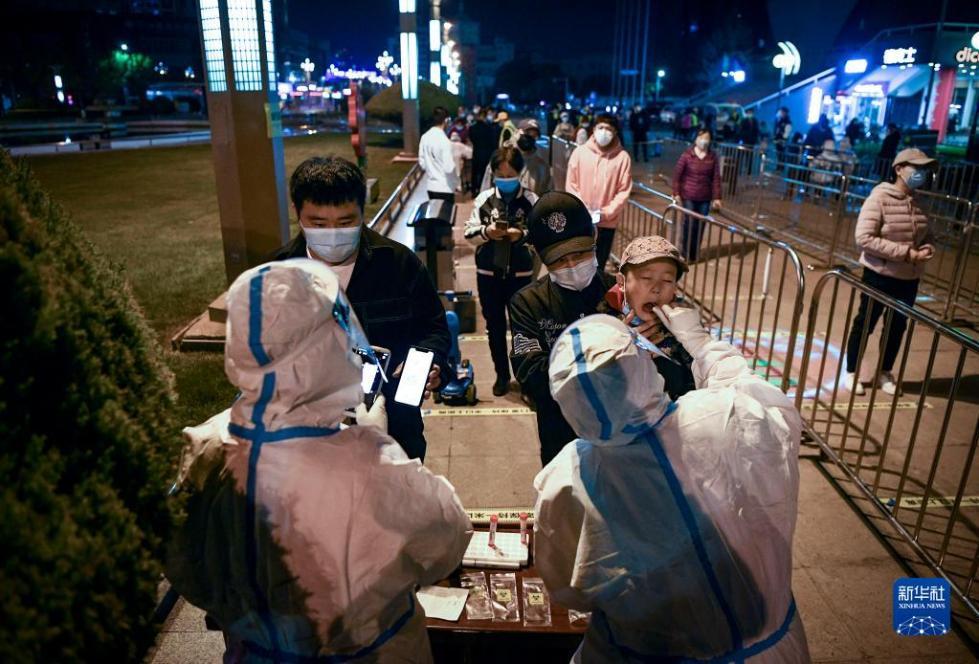 10月23日,在寧夏銀川市興慶區光明廣場采樣點,醫務人員對居民進行核酸采樣。新華社記者 馮開華攝