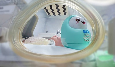 新生兒內科病房中,伴隨著監護儀的滴答聲,響起了輕緩動聽的音樂和媽媽的呢喃細語。當30周的早產兒越越(化名)在暖箱里第一次聽到錄音筆中傳來媽媽的聲音時,她睜著好奇的大眼睛,安靜聆聽著媽媽的哼唱,時而把頭轉向聲音傳來的方向,偶爾還會抬起小胳膊伸個懶腰或者抬抬小腿。平時愛哭鬧的越越,經過媽媽的“安慰”后,顯得格外舒適,監護儀上顯示的心率和呼吸頻率也更加趨于穩定,不一會兒就進入了甜美的夢鄉。