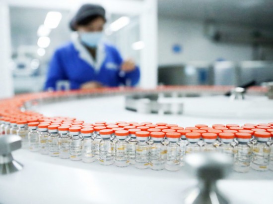 今年1月,科興中維的工作人員檢查新冠病毒滅活疫苗標簽。新華社記者張玉薇 攝
