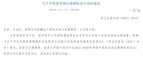 兩部門:在2021-2025年持續開展脫貧地區健康促進行動