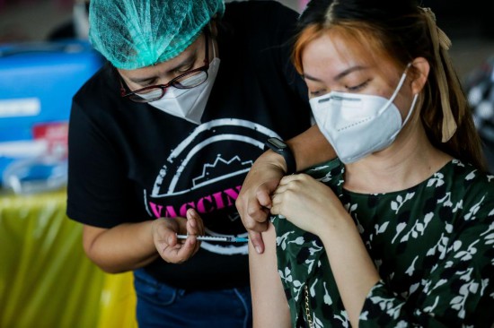 2021年12月16日,市民在菲律賓帕賽市一家商場的疫苗接種點接種新冠疫苗。(新華社發)