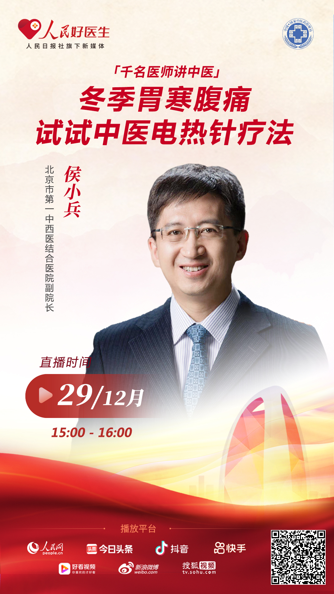 12月29日15:00,人民日?qǐng)?bào)社旗下新媒體平臺(tái)“人民好醫(yī)生”與國(guó)家中醫(yī)藥管理局辦公室聯(lián)合推出的“千名醫(yī)師講中醫(yī)”系列直播將邀請(qǐng)北京市第一中西醫(yī)結(jié)合醫(yī)院副院長(zhǎng)侯小兵做客直播間,為大家詳細(xì)講解電熱針在治療胃炎等疾病方面的應(yīng)用。