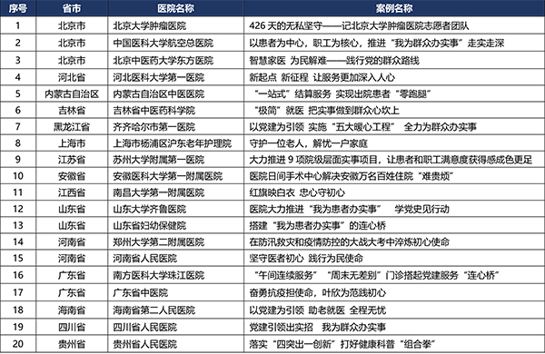 2020-2021年度全國公立醫(yī)院黨建征集活動入選案例名單揭曉