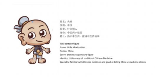 動漫形象將針灸銅人孩童化、可愛化,賦予其中醫藥小使者的身份,以及熟識中醫藥、擅講中醫藥故事的特長。在“灸童”身上可以找到很多中醫藥元素,比如,身體上重要穴位的標記、醫家常穿戴的服飾等等,葫蘆、背簍等道具也彰顯中醫藥有機天然的感覺,體現中醫藥文化天人合一的內在精髓。