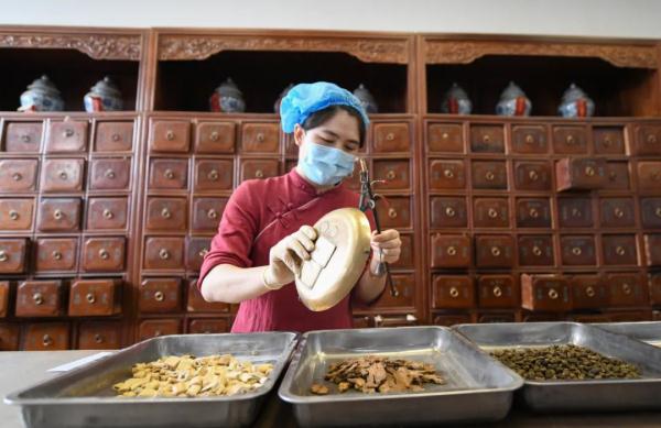 1月12日,藥師在天津中醫藥大學第一附屬醫院進行中藥調劑。