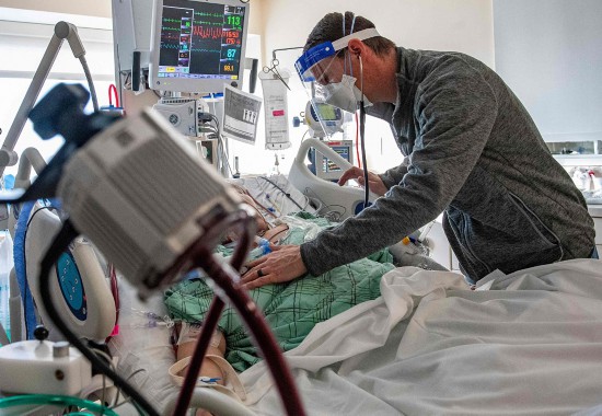 1月18日,美國康涅狄格州,醫務人員在重癥監護病房救治新冠病人