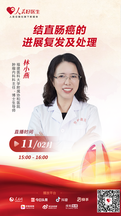 2月11日15:00,福建醫(yī)科大學(xué)附屬協(xié)和醫(yī)院腫瘤內(nèi)科科主任、博士生導(dǎo)師林小燕將做客人民日報社旗下新媒體平臺“人民好醫(yī)生”客戶端直播間,與大家分享“結(jié)直腸癌的進(jìn)展復(fù)發(fā)及處理”相關(guān)知識。歡迎屆時收看。