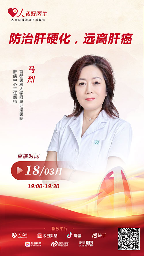 3月18日19:00,首都醫科大學附屬地壇醫院肝病中心主任醫師馬烈將做客“人民好醫生”健康科普直播間,與大家就肝硬化防治的相關問題進行分享。