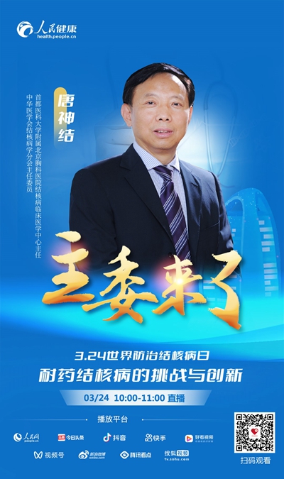 3月24日是第27屆世界防治結(jié)核病日,當(dāng)天上午10:00,首都醫(yī)科大學(xué)附屬北京胸科醫(yī)院結(jié)核病臨床醫(yī)學(xué)中心主任、中華醫(yī)學(xué)會結(jié)核病學(xué)分會主任委員唐神結(jié)教授將做客“人民好醫(yī)生”客戶端,為大眾解讀耐藥結(jié)核病目前的挑戰(zhàn)與創(chuàng)新。歡迎屆時收看。