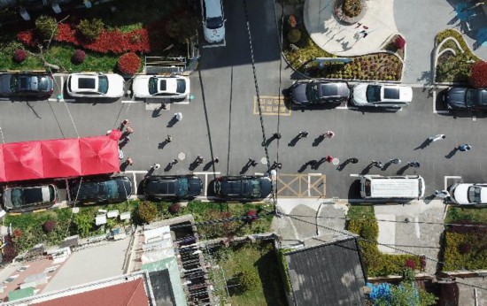 位于閔行區(qū)東川路的紫竹半島,醫(yī)護人員“搭乘”由電三輪改裝好的移動檢測車,開到每個樓棟門前,然后由樓組長在群內(nèi)按樓層通知,一戶戶下來檢測。專家也提醒市民朋友:一是事先做好登記并截屏保存,注意信息登記的準(zhǔn)確性、完整性。二是按照工作人員安排指引,分批、有序、規(guī)范佩戴口罩前往采樣點,保持2米距離,避免聚集交談,防止交叉感染。采樣后立即戴好口罩盡快回家。
