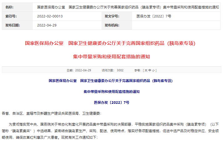 兩部門發(fā)文完善國(guó)家集采胰島素落地措施