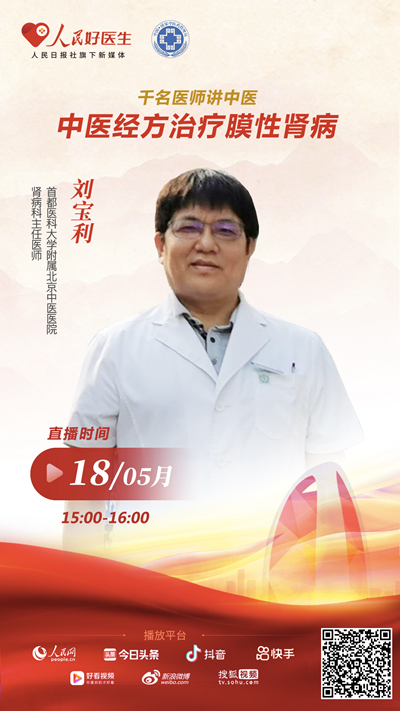 5月18日15:00至16:00,“人民好醫(yī)生”與國(guó)家中醫(yī)藥管理局辦公室聯(lián)合推出的“千名醫(yī)師講中醫(yī)”系列直播將邀請(qǐng)到首都醫(yī)科大學(xué)附屬北京中醫(yī)醫(yī)院腎病科 劉寶利主任醫(yī)師做客直播間,為大家詳細(xì)講解膜性腎病的中醫(yī)經(jīng)方療法,千萬(wàn)不要錯(cuò)過(guò)。
