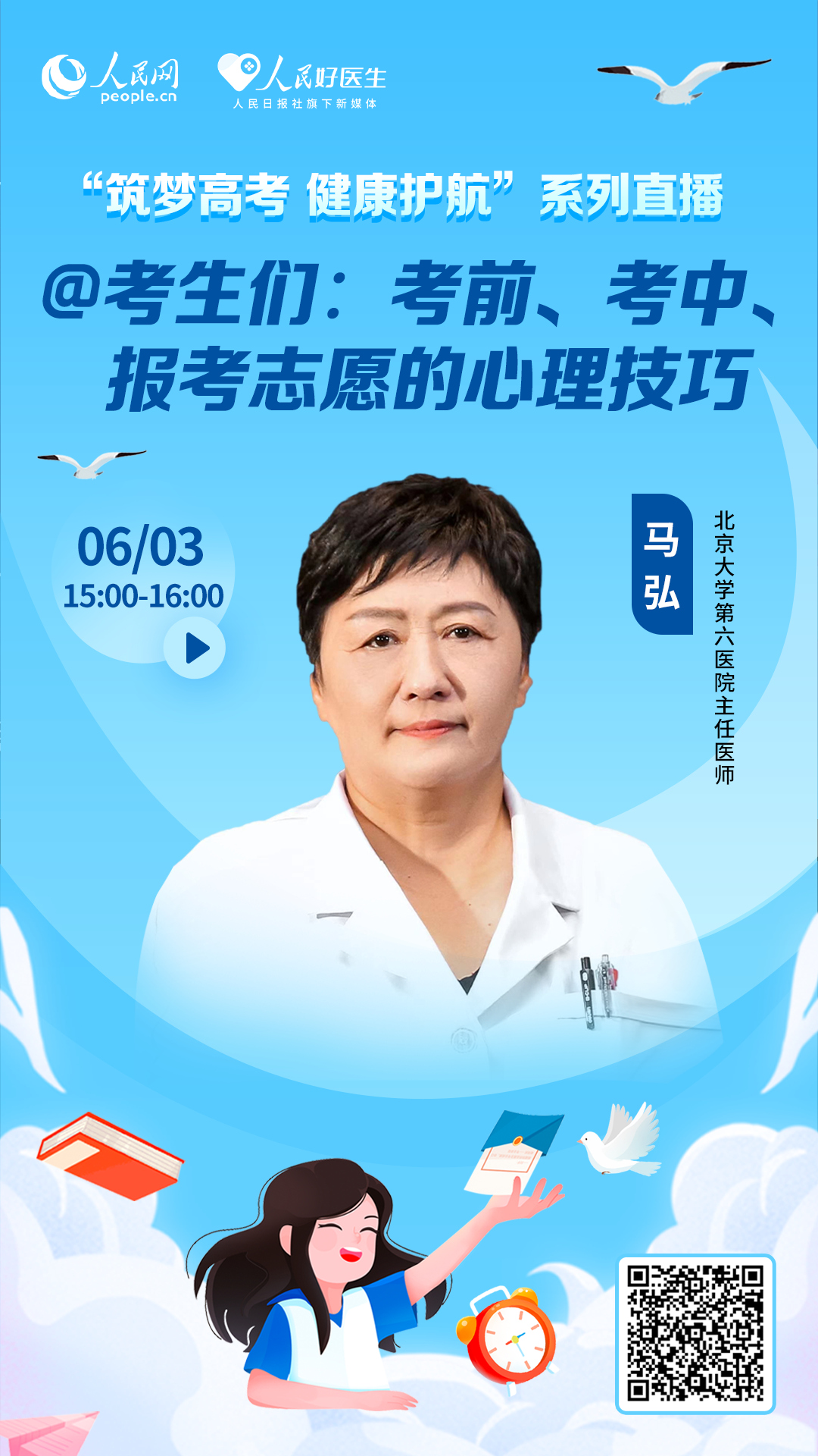 十年寒窗苦讀日,只盼金榜題名時。受新冠肺炎疫情的影響,今年的高考尤為特殊。如何幫助考生做好個人防護,保障他們的身心健康,順利完成考試,是家長和考生們當下最關心的事。為此,人民網健康生活頻道和人民日報旗下新媒體“人民好醫生”客戶端聯合推出“筑夢高考 健康護航”2022年高考“健康與防疫”系列訪談。