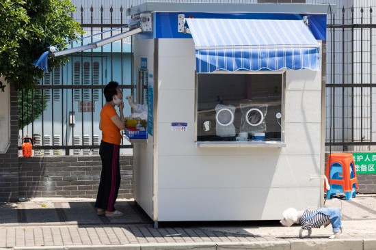 5月31日,在上海市黃浦區(qū)福佑路上,市民在核酸采樣工作站做采樣檢測。新華社記者 金立旺 攝