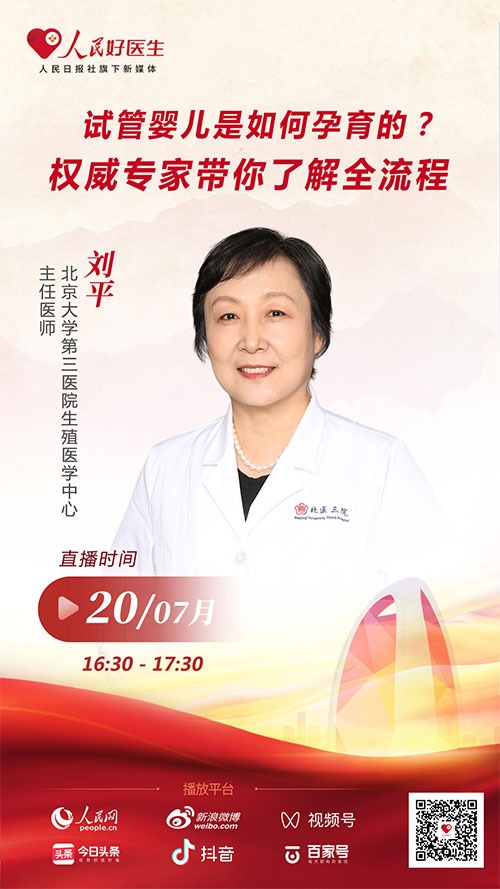 7月20日16:30,北京大學第三醫院生殖醫學中心主任醫師劉平將做客“人民好醫生”客戶端,為廣大網友科普輔助生殖技術相關知識。