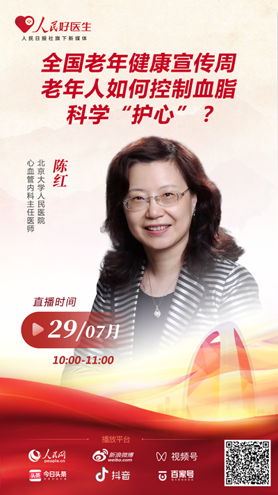 7月29日上午10:00-11:00,北京大學(xué)人民醫(yī)院心血管內(nèi)科主任醫(yī)師陳紅將做客“人民好醫(yī)生”直播間,共同就老年心血管健康的相關(guān)內(nèi)容和網(wǎng)友進(jìn)行分享,歡迎收看。