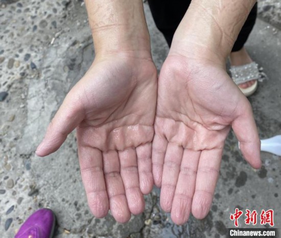 完成消殺、脫下防護服的許洪玉手已經浸的泛白。 順慶區融媒體中心供圖