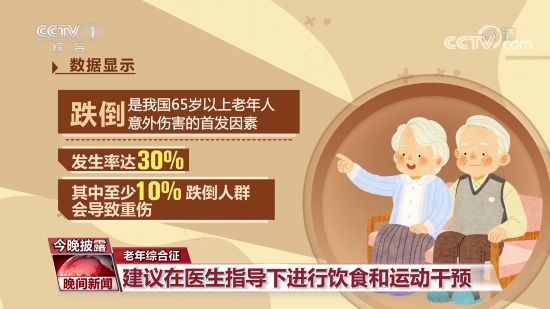 專家介紹,老年綜合征在人群中發病率較高。數據顯示,跌倒是我國65歲以上老年人意外傷害的首發因素,發生率達30%,其中至少10%的跌倒人群會導致重傷。老年阿爾茨海默病的發病率為5%,且發病率隨年齡增加顯著升高。老年抑郁的發病率為10%-20%,還有超過50%的老年人有失眠癥狀。這些都屬于老年綜合征,會直接影響到老人的生活質量,建議盡早到醫院做評估,并在醫生的指導下,進行飲食和運動的干預。