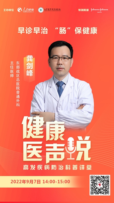 9月7日14:00至15:00,東部戰(zhàn)區(qū)總醫(yī)院普通外科主任醫(yī)師龔劍峰將做客“人民好醫(yī)生”客戶端直播間,就結(jié)直腸良性病的相關(guān)知識(shí)與網(wǎng)友進(jìn)行分享,歡迎屆時(shí)收看。