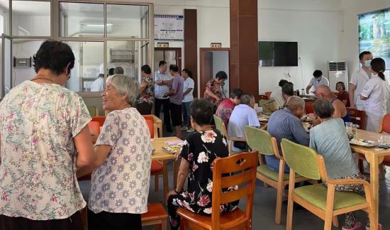 浙江省紹興市一家民營養(yǎng)老服務(wù)機構(gòu)內(nèi),老人們在用餐。受訪者供圖