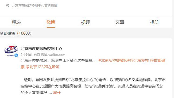 流調電話要求轉賬?北京疾控提醒:防范“流調類詐騙”