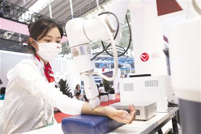 8月10日,在2022世界5G大會展廳里,參觀者在體驗5G網絡支持下的5G遠程醫療設備。新華社記者 張濤攝