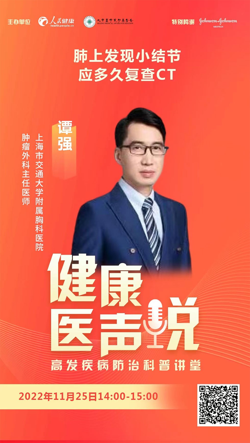 11月25日14:00,上海市交通大學附屬胸科醫院腫瘤外科主任醫師譚強將做客直播間為你答疑。