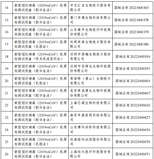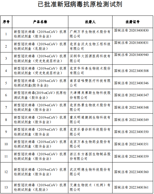 國家藥監局已批準36個新冠病毒抗原檢測試劑