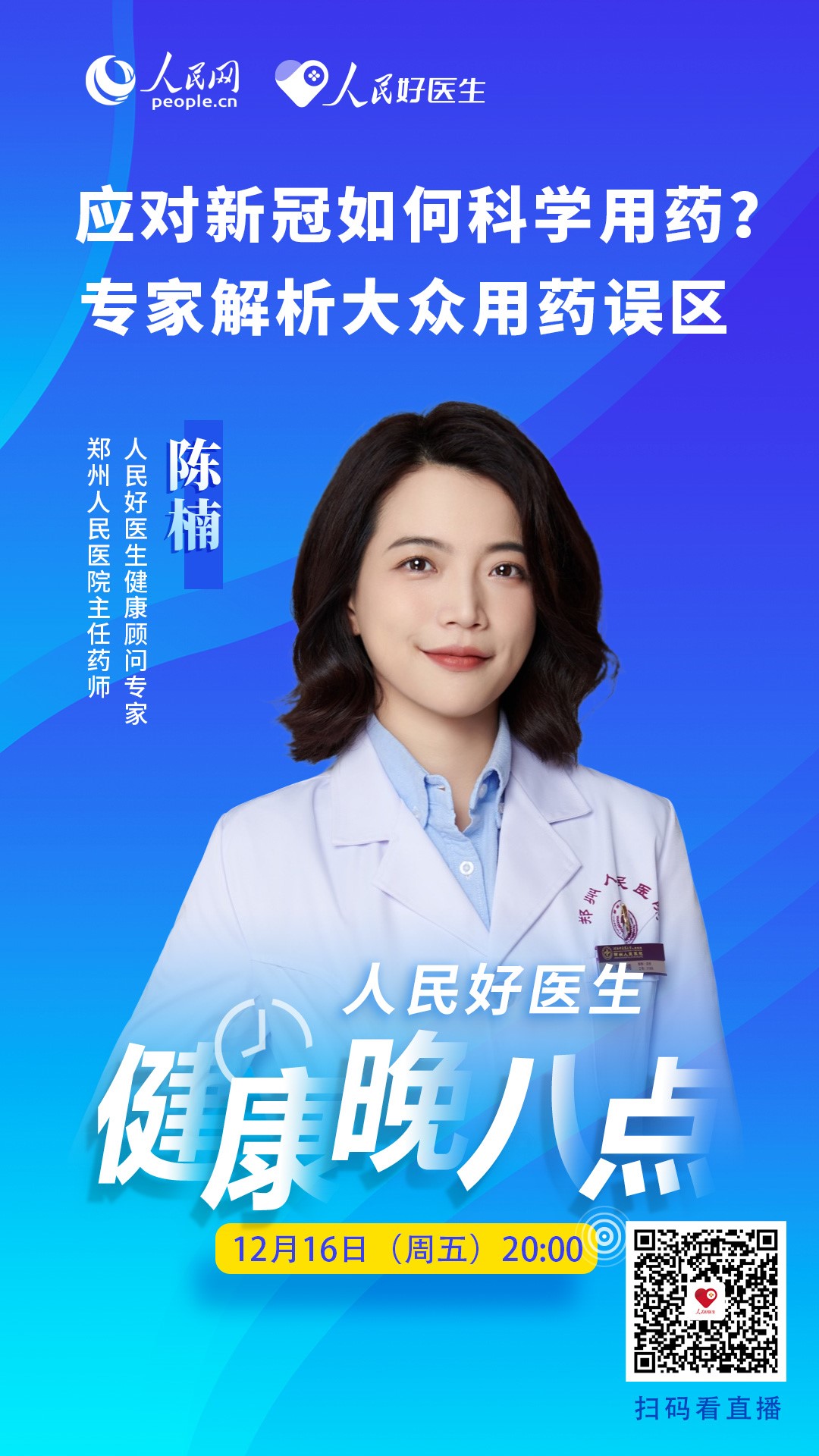 12月16日20:00,《健康晚八點》欄目第五期邀請鄭州人民醫(yī)院主任藥師陳楠做客直播間,詳細講解新冠患者如何科學用藥。