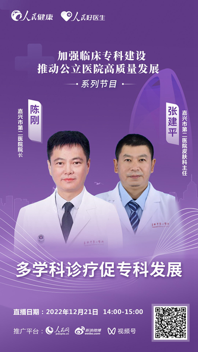 12月21日14:00至15:00,嘉興市第二醫院院長陳剛,嘉興市第二醫院皮膚科主任張建平,將以“多學科診療促專科發展”為主題進行交流和探討,歡迎屆時收看。