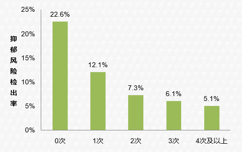 不同運動頻率下的抑郁風險檢出率。 資料來源:《中國國民心理健康發展報告(2021-2022)》